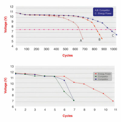 ENERGY POWER utilizza la tecnologia al CALCIO su piastre positive e negative . Questa tecnologia, adottata su piombo altamente purificato consente alla batteria di durare più a lungo . Le piastre sono fortemente resistenti alla corrosione, alla sovraccarica e all’ autoscarica . Una speciale lega in argento HTC garantisce nel tempo l’adesione della materia attiva sulla piastra . Il doppio coperchio dotato di “flame arrestor” assicura a tutte le batterie massima sicurezza e perfetta autogestione dell’ acido necessario. Tutti i principi con cui sono costruite le batterie ENERGY POWER garantiscono durata nel tempo e maggiore efficienza rispetto alle tradizionali batterie (piombo/antimonio) non sigillate.